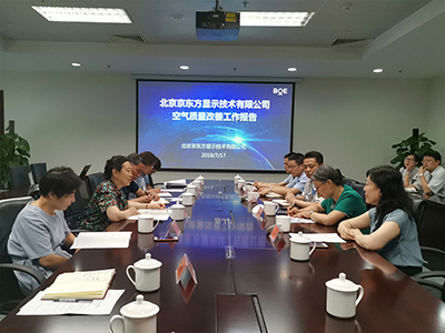 随后调研组来到位于经济技术开发区的北京京东方显示技术有限公司,现场了解企业氮氧化物减排和挥发性有机物治理情况。该企业于2015年投资960万元实施了酸性废气处理系统氮氧化物减排项目,将原有一段式喷淋吸收处理系统升级为三段式串联洗涤系统,提升氮氧化物处理效率,改造后氮氧化物排放浓度由110mg/m3稳定至40mg/m3,实现每年减排氮氧化物约36吨。于2015年实施了有机溶剂回收利用项目,通过对真空干燥机排气进行冷凝,回收排气内的稀释剂成份并再利用,年减少有机溶剂用量约5.88万升,并通过导入剥离液智能化控制系统,实现每年消减有机溶剂约620吨。