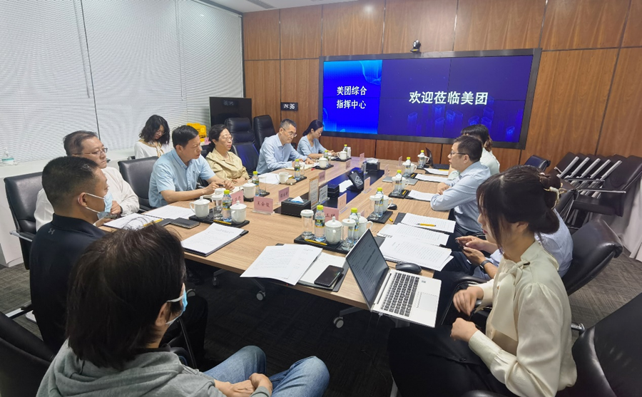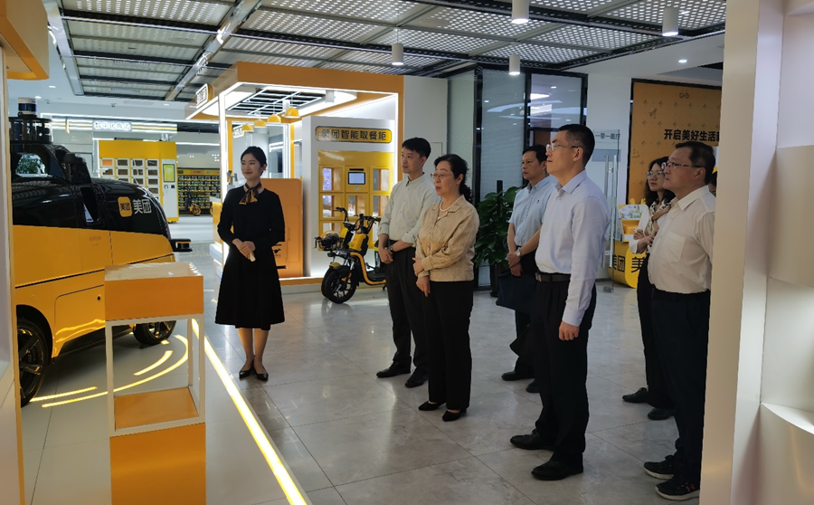 闫傲霜副主任一行实地察看美团综合指挥中心,观摩生活服务业大数据运营平台、自动配送车、智能取餐柜、无人机等科技成果应用。