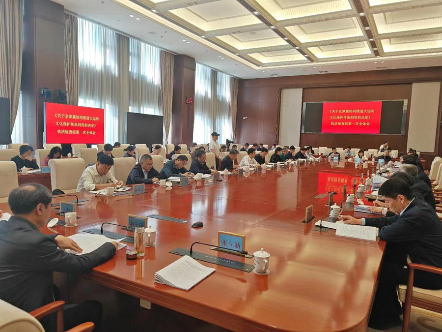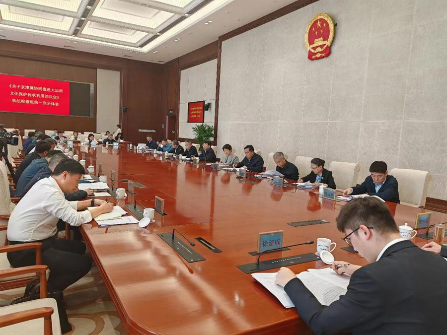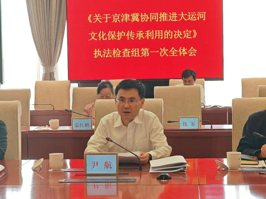 北京人大网讯 4月24日下午,市人大常委会《关于京津冀协同推进大运河文化保护传承利用的决定》执法检查组第一次全体会议召开,启动执法检查工作。市人大常委会副主任、执法检查组组长于军,市政府副秘书长尹航出席会议并讲话。市人大教科文卫委主任委员、市人大常委会副秘书长、执法检查组副组长刘玉芳主持会议。执法检查组成员,市发展改革委、市文物局、市财政局、市规划自然资源委、市生态环境局、市交通委、市水务局、市文化和旅游局、市广电局、市园林绿化局、市公园管理中心等政府部门负责同志参加会议。