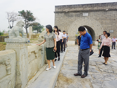 调研人员先行到达张家湾古镇遗址,实地查看了通运桥及古城墙遗存现状,参观了张家湾博物馆。张家湾古镇建于明代,有“大运河第一码头”之称,目前正在筹建遗址公园,集中展示大运河以皇木厂、上下盐场等为代表的漕运仓储文化及其衍生的红学、民族、异域文化。