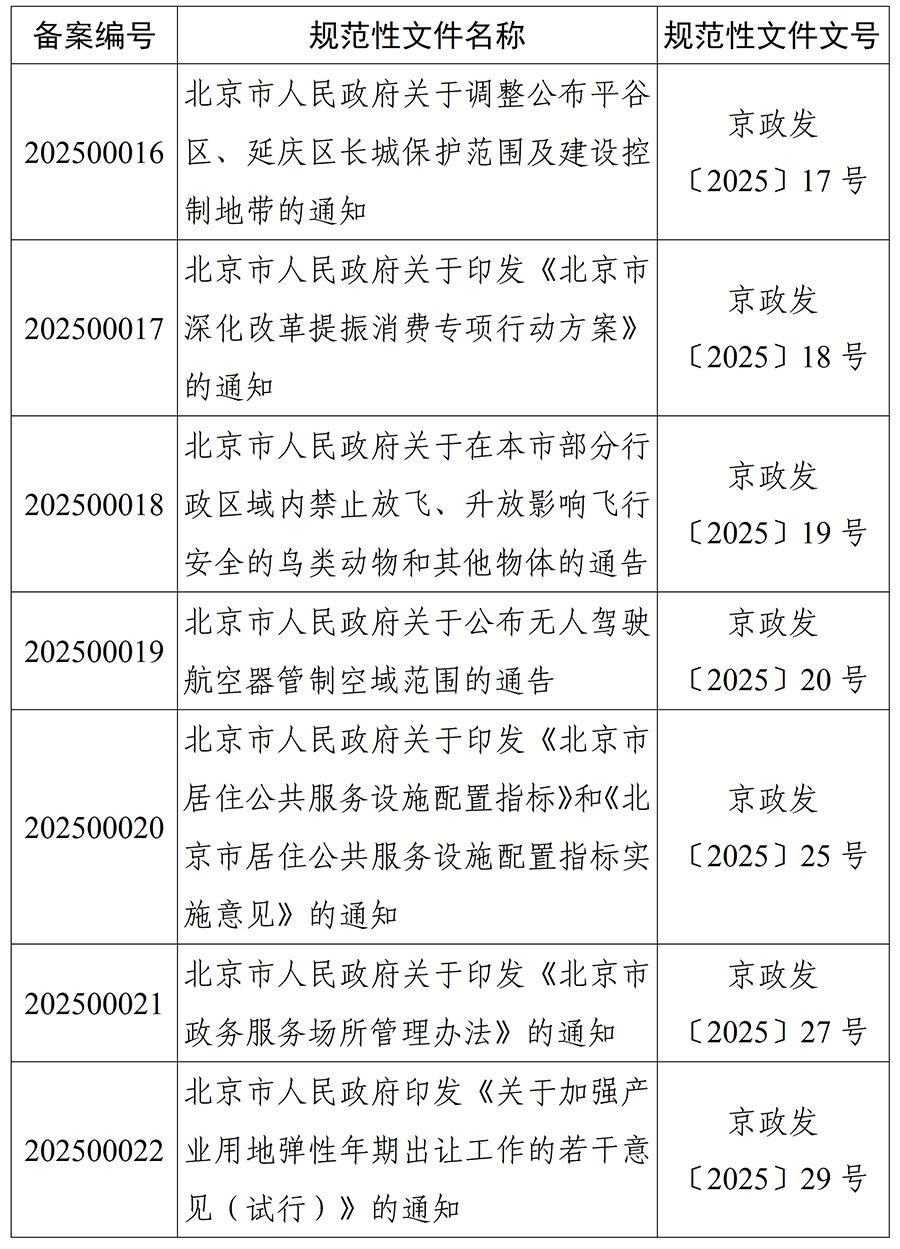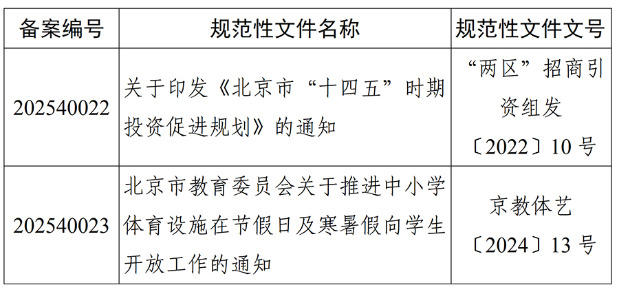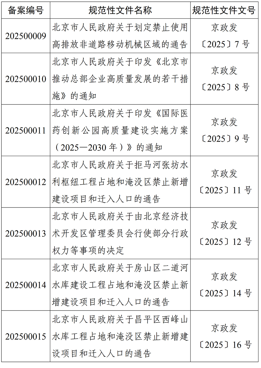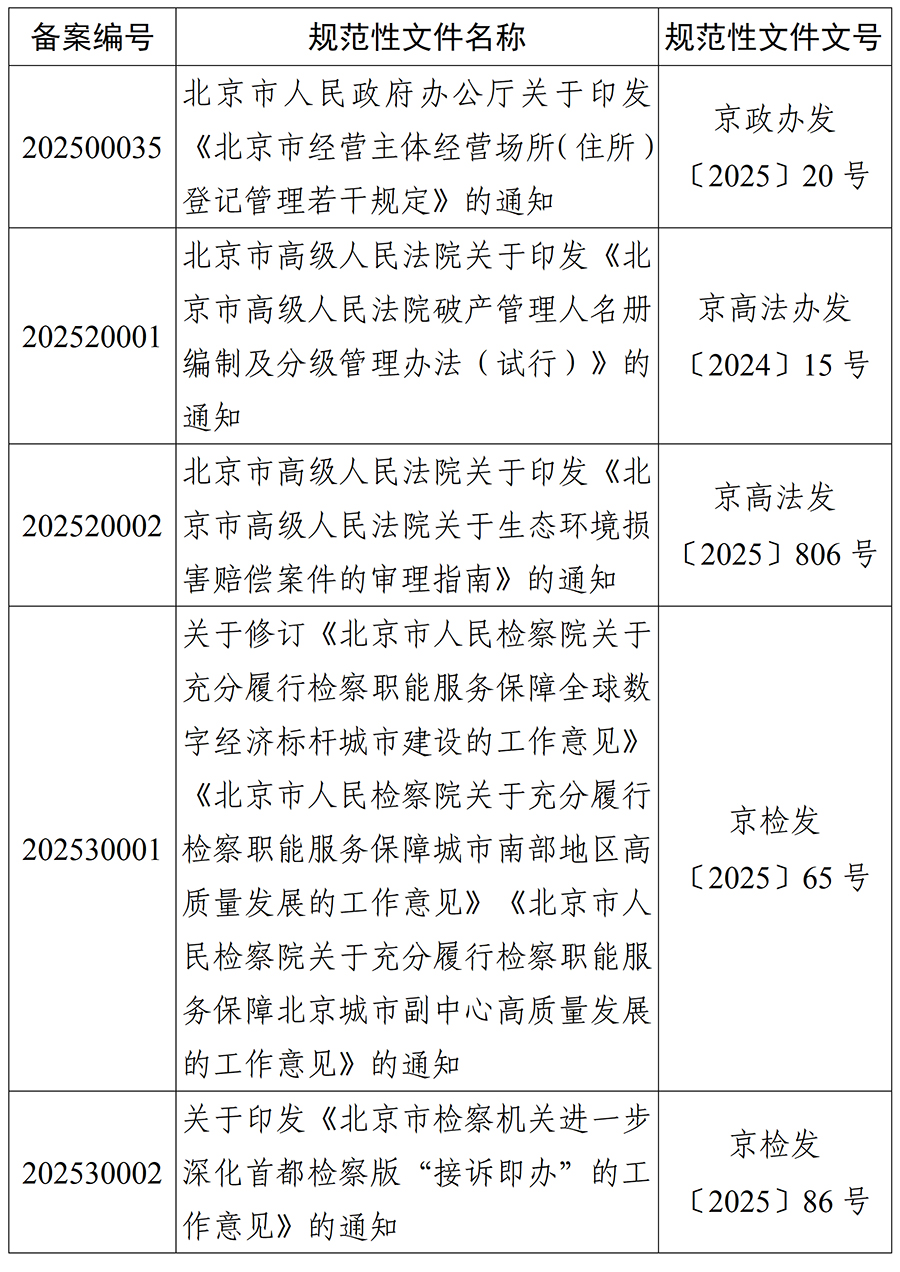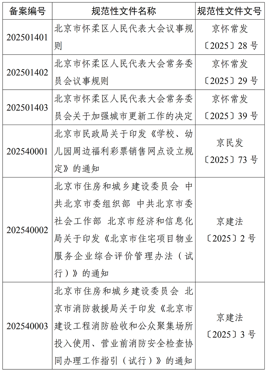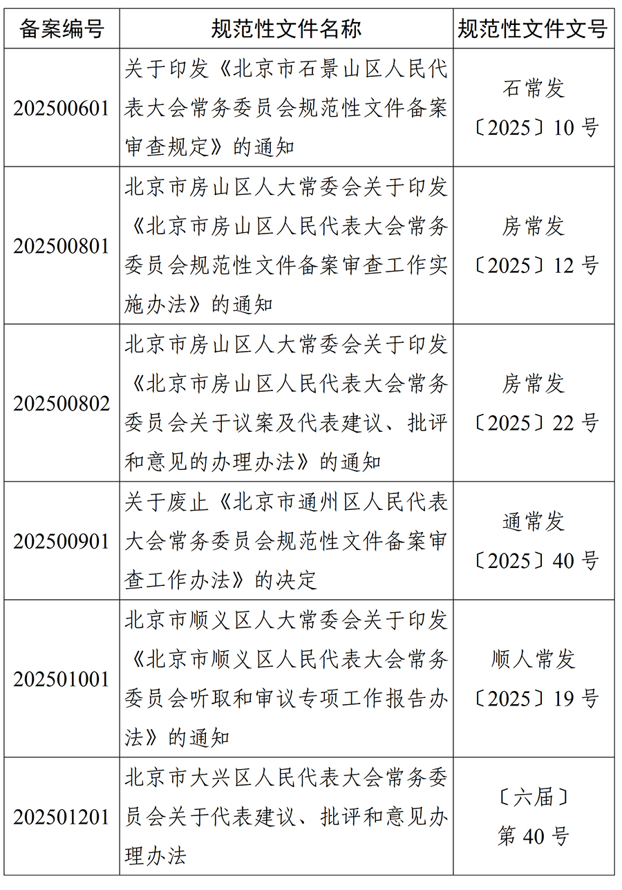 北京市人大常委会2025年度规范性文件备案目录