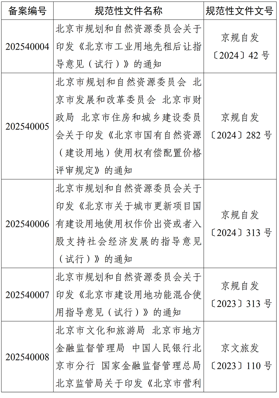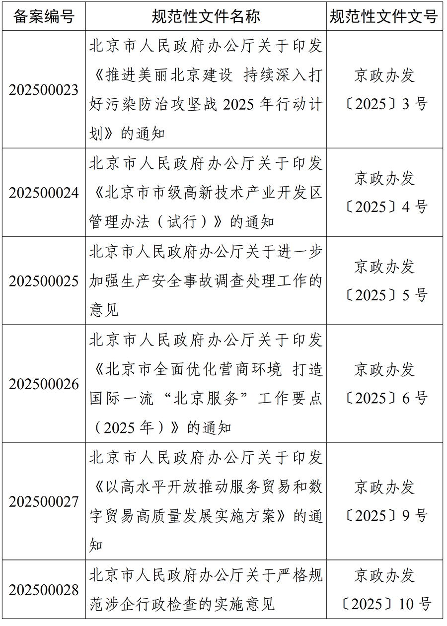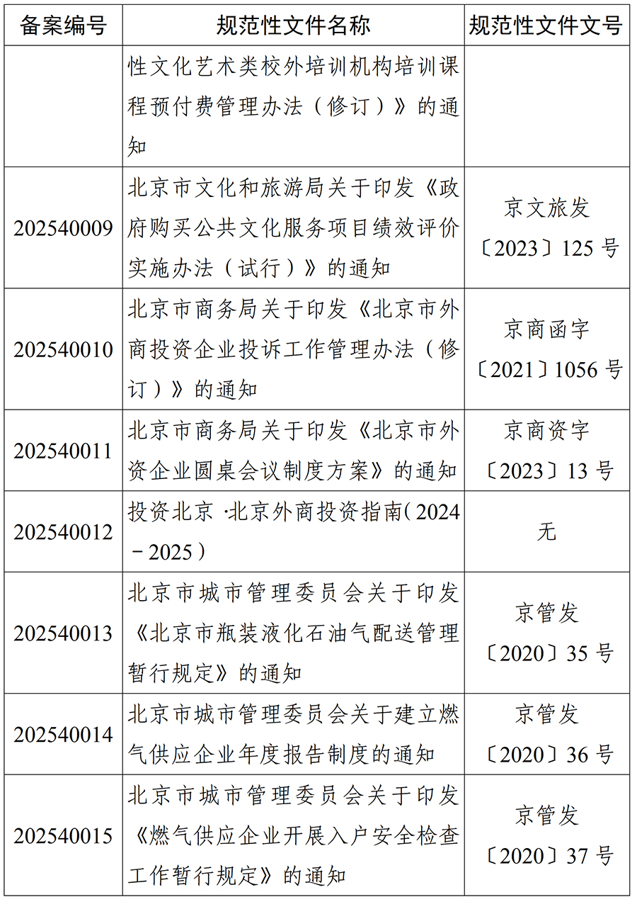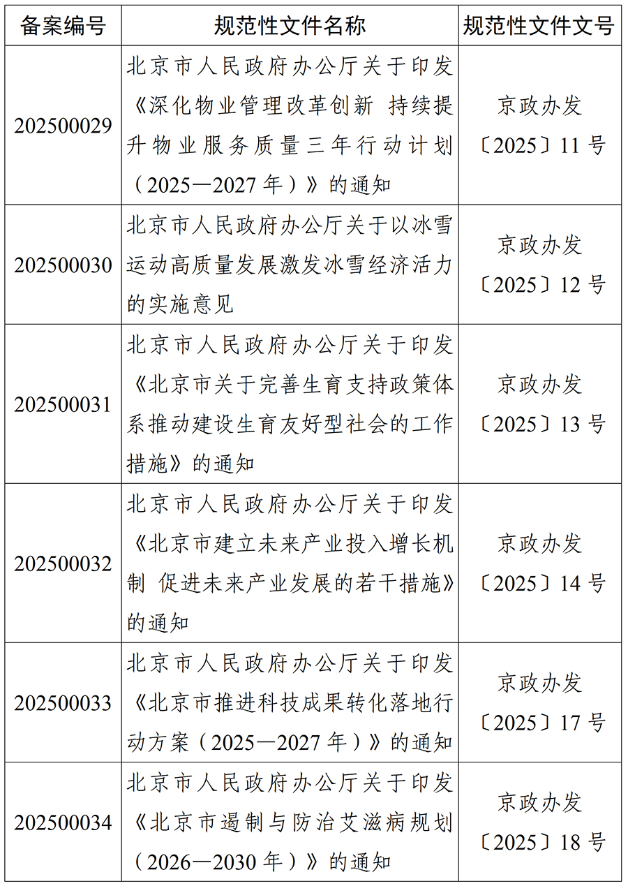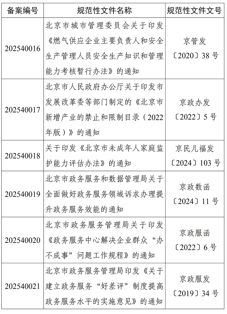 北京市人大常委会2025年度规范性文件备案目录
