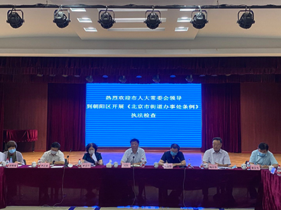 北京人大网讯 7月31日,执法检查组副组长、市人大常委会副主任刘伟带领部分执法检查组成员,就《北京市街道办事处条例》落实情况赴朝阳区开展执法检查工作。市委相关部门、市民政局相关同志也参加了本次执法检查活动。