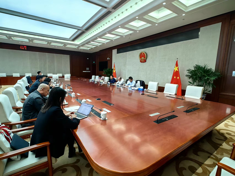 北京人大网讯 2023年4月3日,市人大常委会民宗侨外办公室组织召开中国国际服务贸易交易会(简称“服贸会”)地方立法调研座谈会,民宗侨外办公室副主任任佩文同志主持会议。市人大常委会法工委、市司法局、市商务局、市服贸中心以及首都会展集团有关负责同志参加会议。