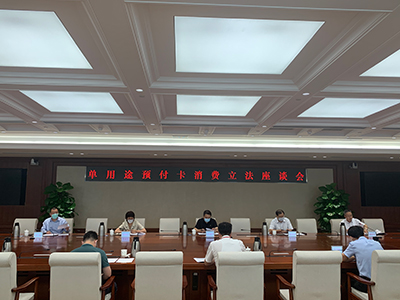 相关部门负责同志就法规立项申请报告主要内容、本市单用途预付卡管理中存在的问题、立法思路和主要制度设计进行了汇报。座谈中,大家围绕加强单用途预付卡监管,防范资金风险,完善预付资金存管,加强信用管理,保护消费者合法权益等方面进行了深入交流。